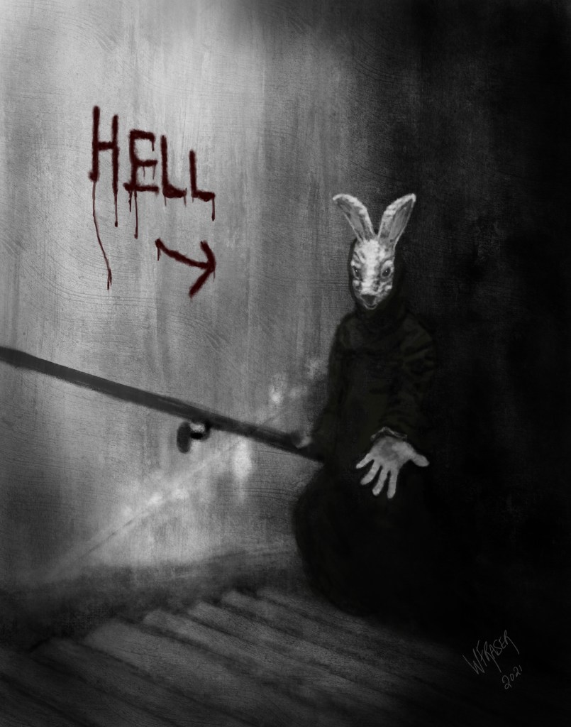 The story goes that one year a bus full of asylum inmates crashed, and all but one of the patients was captured. Attempts to track him just found a trail of gutted rabbit corpses. The escaped inmate was still at large when, on Halloween of that year, children trying to pass beneath a bridge encountered a man in a rabbit costume wielding a hatchet. In some stories the children escape, in others they end up gutted like the rabbits the trackers found, but from that date onward, on Halloween people must beware the Bunny Man Bridge.