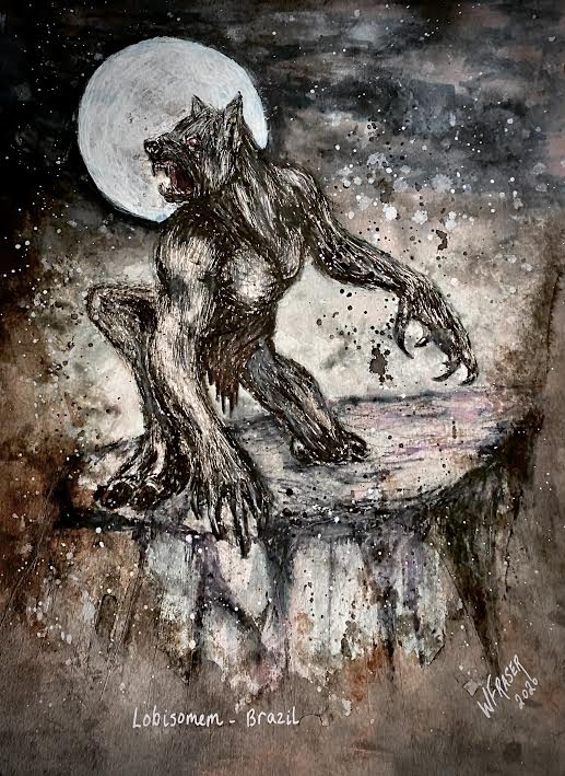 The werewolves of Brazil, or the Lobisomem, carried a variety of beliefs from Portugal which then settled in different regions of the New World. The Portuguese variations of werewolf folklore focus on unusual circumstances of birth resulting in the curse, such as incest, or if someone’s eighth child is a son after seven daughters. There’s even a vampiric variant, where tall gaunt and pale men turn into a werewolf to drink blood because they’re anemic.